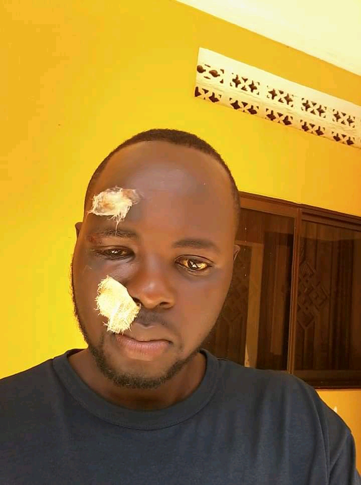 The accident that happened within Kampala left the young vocalist with bruises evidently as seen in the picture saw him rushed to receive first aid treatment at Winners Clinic opp ETM on Salama road - Makindye Division.
